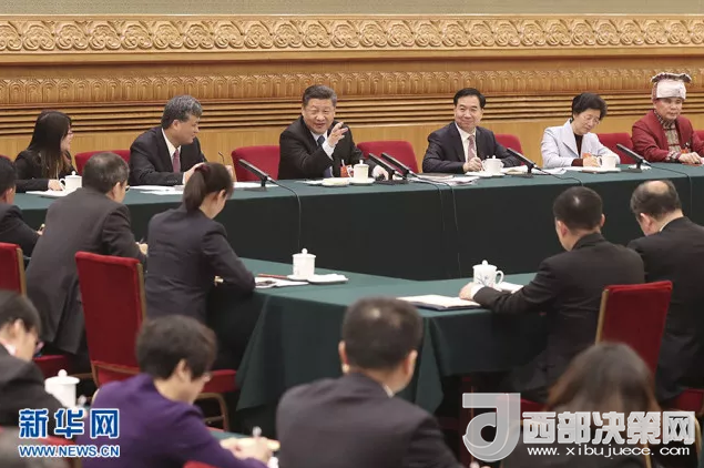2018年3月7日,中共中央總書記、國(guó)家主席、中央軍委主席習(xí)近平參加十三屆全國(guó)人大一次會(huì)議廣東代表團(tuán)的審議。新華社發(fā)(盛佳鵬攝)