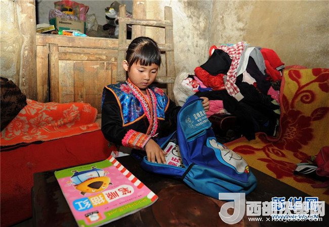 在今年的易地扶貧搬遷中,家住貴州省安順市西秀區(qū)巖臘鄉(xiāng)龍?zhí)洞甯裆趁缯?歲女孩吉雪,與家人一起從缺水、耕地少、海拔高的格沙苗寨搬遷至50公里外的西秀區(qū)工業(yè)園區(qū)易地扶貧搬遷安置點——彩虹社區(qū)。從4月21日夜開始,吉雪便開始忙著收拾自己的書包,準(zhǔn)備隨同爺爺、奶奶、妹妹一起離開深山苗寨。
