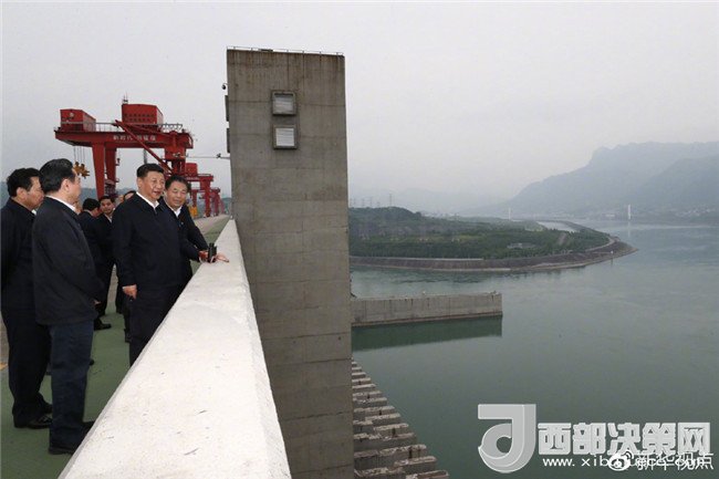 離開許家沖村,習(xí)近平來到三峽大壩,登上壩頂,極目遠(yuǎn)眺長江上下游,詳細(xì)了解三峽工程建設(shè)、發(fā)電、水利、通航、生態(tài)保護(hù)等方面的情況。隨后,前往通航船閘、升船機(jī)和左岸發(fā)電廠實(shí)地調(diào)研。