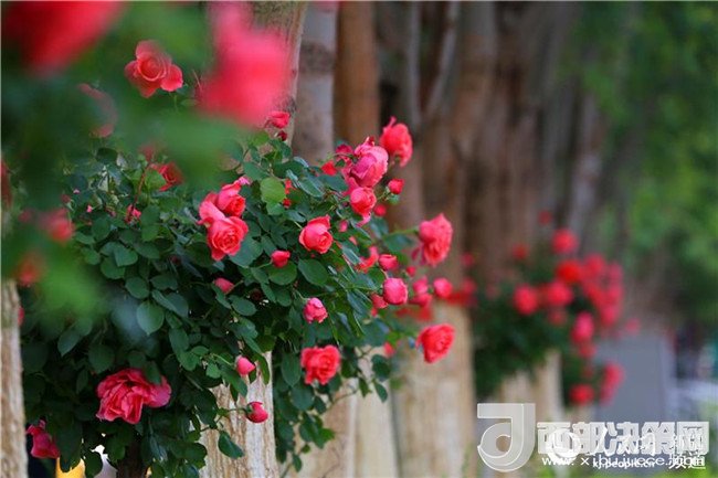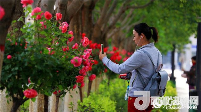 漫步在友好路兩側(cè)的人行道上,青青垂柳遮住了太陽的熾熱,垂柳上的許愿帶隨風(fēng)飄蕩,五顏六色的玫瑰花光彩奪目,空氣中都是夏天的味道。這里的人們都已經(jīng)換上的夏天的衣服,小孩子在老人和父母的陪伴下在這里納涼賞花,過往的路人時(shí)不時(shí)拿出手機(jī)和玫瑰花拍照留影。(李靖海、吳雙、胡國(guó)凱)