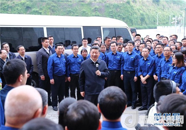 4月26日下午,中共中央總書記、國家主席、中央軍委主席習(xí)近平在武漢主持召開深入推動長江經(jīng)濟帶發(fā)展座談會并發(fā)表重要講話。這是座談會前,習(xí)近平于24日下午在三峽大壩左岸電站考察。新華社記者 謝環(huán)馳 攝