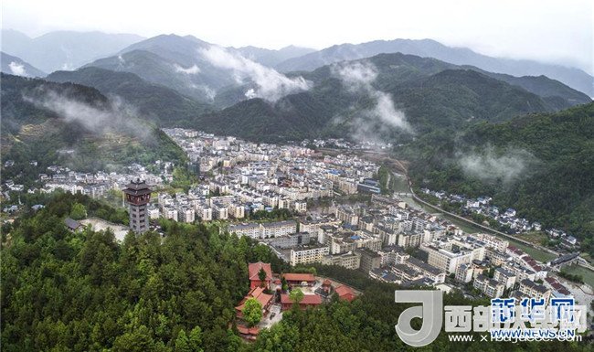 俯瞰新青川縣城(4月25日無(wú)人機(jī)拍攝)。新華社記者陶明攝