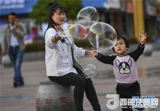 4月25日,3歲的宋雅萱和姐姐一起在人民公園廣場(chǎng)玩耍。新華社記者陶明攝