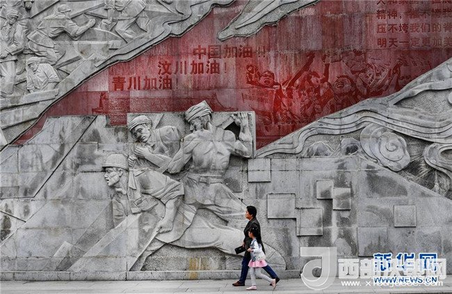 4月26日,市民從感恩奮進(jìn)墻前走過(guò)。感恩奮進(jìn)墻是花崗巖浮雕墻,長(zhǎng)230米,高12米,再現(xiàn)了青川的風(fēng)土人情、歷史文化和眾志成城、自強(qiáng)不息的抗震救災(zāi)精神、地震災(zāi)后重建和生態(tài)青川的壯美畫卷。新華社記者陶明攝