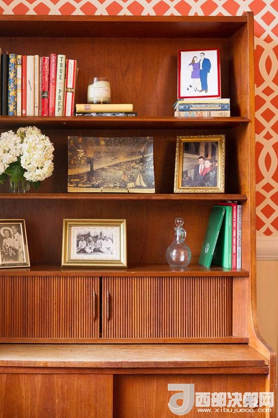 原木材質的收納柜,可以用作書架或是照片展示,簡單而樸實,更加富有生活氣息。