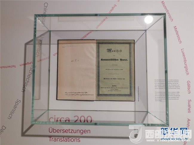 歷史長河奔流不息,真理之光穿越時空。1818年5月5日,德國小城特里爾,一代偉人馬克思誕生。200年后,世界東方。高擎馬克思主義的精神火炬,在習(xí)近平新時代中國特色社會主義思想指引下,中國共產(chǎn)黨正領(lǐng)導(dǎo)億萬人民書寫人類發(fā)展史上新的奇跡。這是2018年5月3日在德國特里爾馬克思故居紀(jì)念館內(nèi)拍攝的1848年出版的《共產(chǎn)黨宣言》第一版。新華社記者 單宇琦 攝