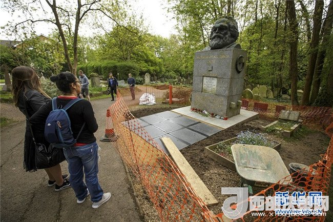 歷史長河奔流不息,真理之光穿越時空。1818年5月5日,德國小城特里爾,一代偉人馬克思誕生。200年后,世界東方。高擎馬克思主義的精神火炬,在習(xí)近平新時代中國特色社會主義思想指引下,中國共產(chǎn)黨正領(lǐng)導(dǎo)億萬人民書寫人類發(fā)展史上新的奇跡。這是2018年5月3日,在英國倫敦北部海格特公墓,人們來到正在進(jìn)行維修的馬克思墓前參觀。新華社發(fā)(蒂姆·愛爾蘭攝)