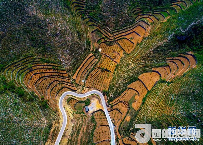 這是5月6日無(wú)人機(jī)拍攝的涉縣關(guān)防鄉(xiāng)后池村梯田和公路。