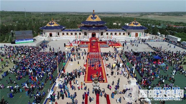 這是成吉思汗陵春季大祭現(xiàn)場(chǎng)(5月6日無人機(jī)拍攝)。新華社記者 達(dá)日罕 攝