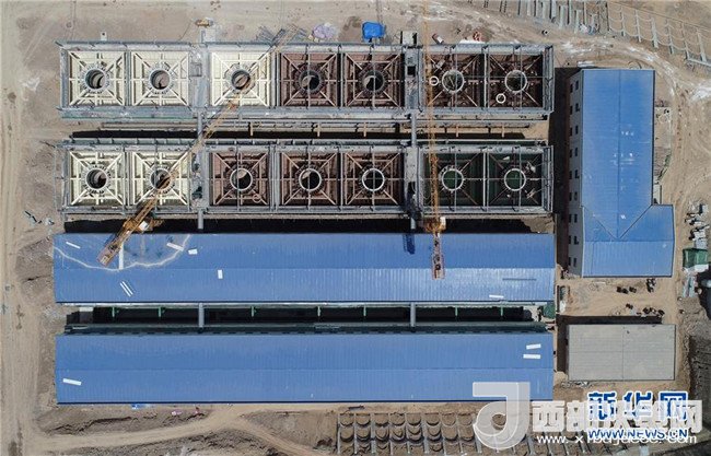 延安黃河引水工程泥沙處理站施工現(xiàn)場(5月30日無人機(jī)拍攝)。