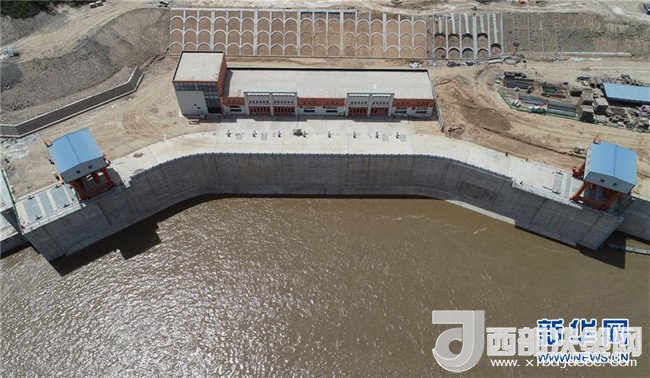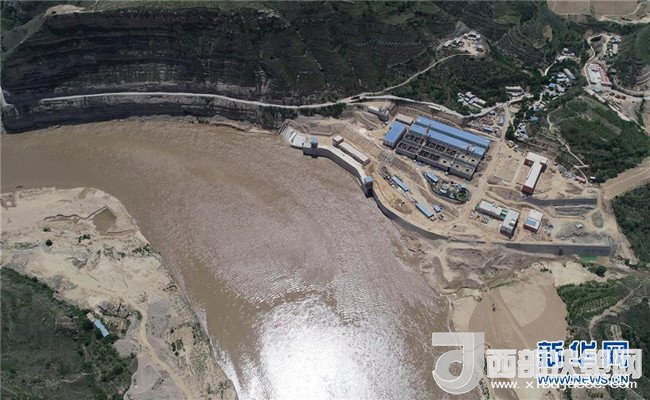 延安黃河引水工程取水樞紐施工現(xiàn)場(5月30日無人機(jī)拍攝)。