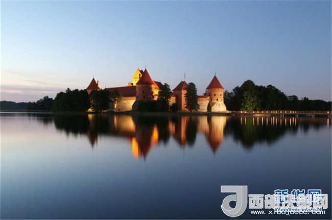 這是5月30日拍攝的落日余輝中的特拉凱城堡。特拉凱城堡位于立陶宛首都維爾紐斯以西約25公里的加爾韋湖的一個湖心島上,始建于14世紀(jì)。新華社記者李驥志攝