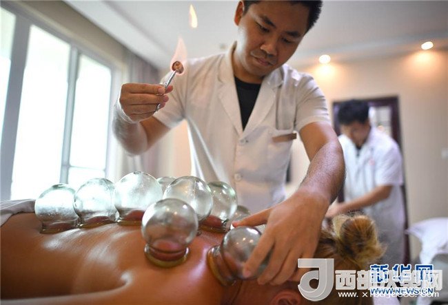 在海南三亞國(guó)際友好中醫(yī)療養(yǎng)院,醫(yī)師為來(lái)自俄羅斯的游客進(jìn)行中醫(yī)理療(6月2日攝)。
