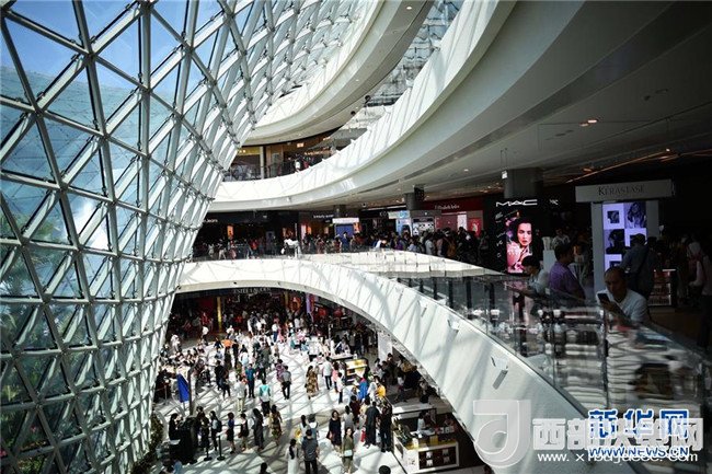 顧客在海南三亞海棠灣免稅店內(nèi)游覽、購(gòu)物(2月18日攝)。