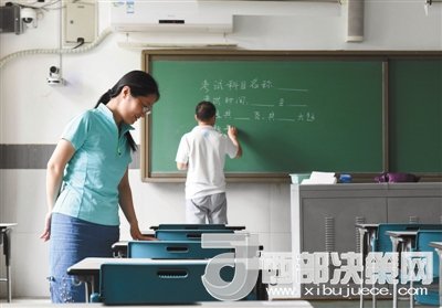 北京101中學(xué)是海淀區(qū)考場最多的一個考點,共有文科考場10個、理科考場20個、兩間備用考場。各位監(jiān)考老師在結(jié)束上午的考前培訓(xùn)后來到了各自負責(zé)的考場,對布置情況進行最后的檢查。