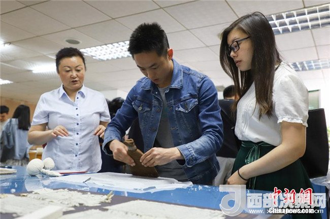 一位同學(xué)在修復(fù)師的指導(dǎo)下體驗(yàn)。中新社發(fā)瞿宏倫攝