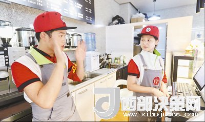 6月21日,在貴陽(yáng)市貴陽(yáng)北站一家名為“無(wú)聲飲品”的飲料店內(nèi),服務(wù)員在用手語(yǔ)相互交流。從點(diǎn)單到付款,再到制作交遞,店員和顧客間都通過(guò)手語(yǔ)或手寫紙條進(jìn)行交流。這家小店是貴陽(yáng)市盲聾啞學(xué)校的校企合作項(xiàng)目,店內(nèi)所有服務(wù)人員均是聾啞學(xué)生。截至目前,貴陽(yáng)已有4家“無(wú)聲飲品”店,為近50名聾啞學(xué)生提供了實(shí)習(xí)和就業(yè)平臺(tái)。歐東衢攝