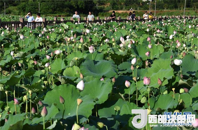 目前,江西南豐縣3萬(wàn)余畝蓮花競(jìng)相綻放,吸引不少游客前來(lái)觀賞。近年來(lái),南豐縣依托白蓮等特色農(nóng)業(yè)產(chǎn)業(yè),深入推進(jìn)旅游扶貧項(xiàng)目建設(shè),引導(dǎo)貧困戶以土地、勞務(wù)、產(chǎn)業(yè)直補(bǔ)資金等形式入股旅游產(chǎn)業(yè)項(xiàng)目,走出了一條特色旅游扶貧之路。2017年,南豐縣共接待游客392萬(wàn)人次,實(shí)現(xiàn)旅游綜合收入31.6億元,全縣共脫貧353戶1109人。新華社記者宋振平攝