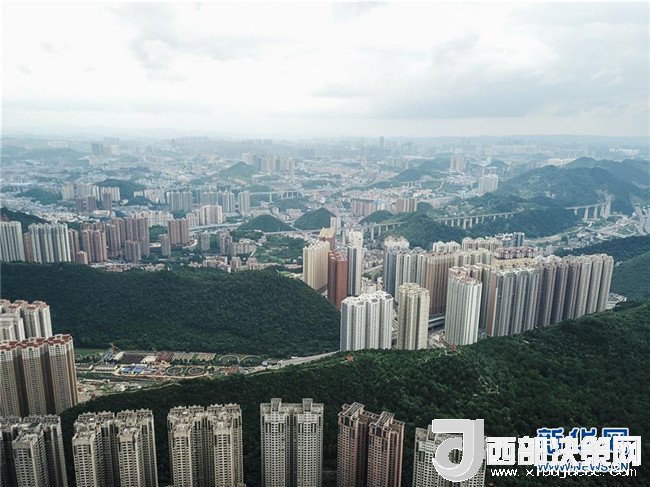 青山圍繞的貴陽(yáng)市城區(qū)一隅(7月3日無人機(jī)拍攝)。