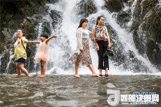 7月11日,在貴州省大方縣黃泥塘鎮(zhèn)烏溪生態(tài)農(nóng)業(yè)避暑園,人們在戲水納涼。