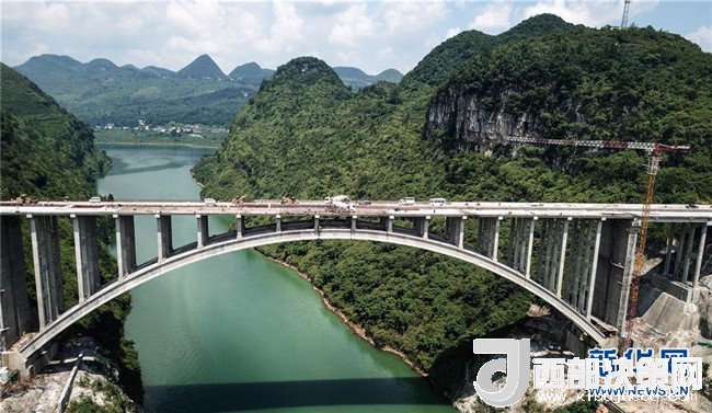 貴州織普高速公路控制性工程——夜郎湖特大橋日前實(shí)現(xiàn)全線貫通,預(yù)計(jì)本月底可全面建成。該橋由貴州橋梁建設(shè)集團(tuán)于2016年5月開始施工,全長(zhǎng)391.4米,拱圈凈跨徑210米。據(jù)了解,織普高速全長(zhǎng)約52公里,建成后由織金縣到普定縣的車程可從原來的2.5小時(shí)縮短到35分鐘,將大幅提高通行效率,進(jìn)一步推動(dòng)沿線經(jīng)濟(jì)發(fā)展。新華社記者 陶亮 攝