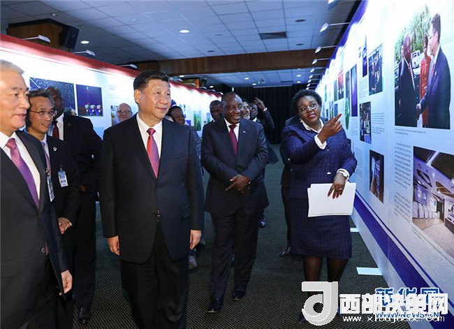 兩國元首共同前往展覽廳,依次觀看展示非洲科技旗艦項目、南非科技成就、中國科技成就、中南科技合作成果的圖片。南非平方公里陣列射電望遠鏡是包括中國在內(nèi)多國科學家參與的重點項目,也是中南重點科技合作項目,兩國元首仔細聽取有關(guān)介紹,并勉勵雙方科學家繼續(xù)努力,把項目建設(shè)好。參觀后,兩國元首出席北汽投資項目首輛汽車下線視頻連線儀式。