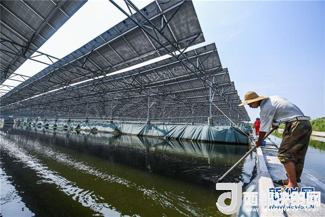 該項(xiàng)目建設(shè)在1800畝魚(yú)塘上,形成了板上發(fā)電、板下養(yǎng)魚(yú)的獨(dú)特景觀(guān),項(xiàng)目裝機(jī)容量60兆瓦,所發(fā)電量全部并入電網(wǎng)。 近年來(lái),浙江省湖州市大力實(shí)施能源項(xiàng)目,以太陽(yáng)能、水能、風(fēng)能等清潔能源替代化石能源,因地制宜實(shí)施農(nóng)光互補(bǔ)、漁光互補(bǔ)、林光互補(bǔ),不僅形成了一條集光伏發(fā)電、農(nóng)業(yè)種植、漁業(yè)養(yǎng)殖、林業(yè)休閑、旅游觀(guān)光于一體的生態(tài)旅游農(nóng)業(yè)光伏產(chǎn)業(yè)鏈,更有效推動(dòng)了能源結(jié)構(gòu)的持續(xù)優(yōu)化,為湖州生態(tài)文明建設(shè)注入綠色動(dòng)能。截至2018年6月底,湖州市新能源發(fā)電裝機(jī)達(dá)到145萬(wàn)千瓦,比2017年同期增長(zhǎng)40%;2018年上半年累計(jì)新能源發(fā)電量8.59億千瓦時(shí),同比增長(zhǎng)51%,相當(dāng)于減少煤炭使用量約34.7萬(wàn)噸,減少二氧化碳排放約85.64萬(wàn)噸。新華社記者 徐昱 攝