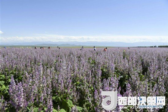 8月1日,在新疆昭蘇縣的一處香紫蘇花海景區(qū),當(dāng)?shù)卮迕駨埿惴加盟崮谈泶裾泻粲慰汀?新華社記者胡虎虎攝