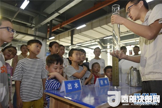 8月2日,小朋友在安徽省合肥市蜀山區(qū)井崗鎮(zhèn)清溪凈水廠的水質(zhì)采樣點(diǎn)觀察進(jìn)水與出水的區(qū)別。 新華社發(fā)(葛宜年 攝)