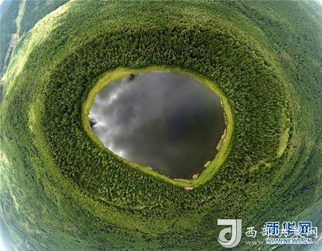 8月5日拍攝的阿爾山天池(無人機(jī)全景拍攝)。