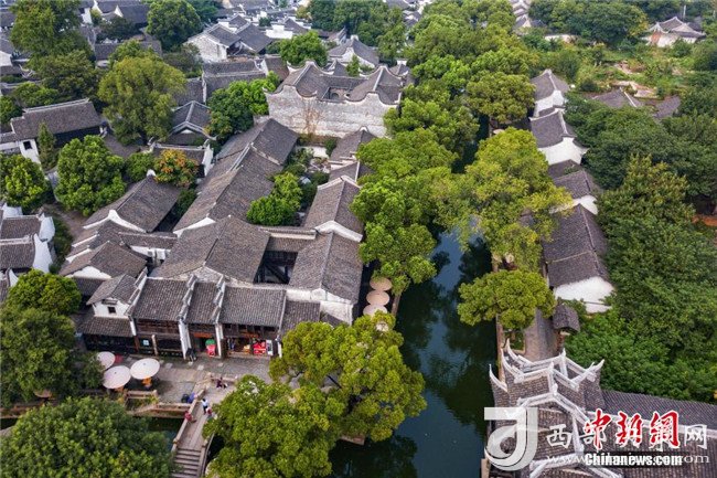 8月11日,航拍無錫惠山古鎮(zhèn),典型的江南民居錯(cuò)落有致,透出古樸韻味。