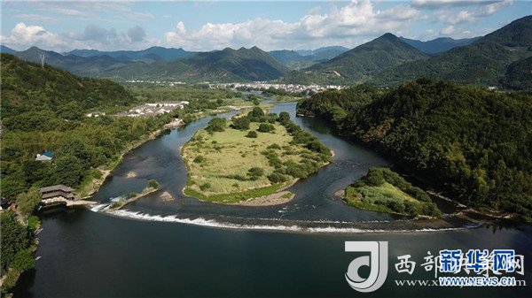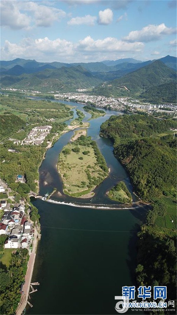 這是麗水市蓮都古堰畫鄉(xiāng)小鎮(zhèn)的“古堰”通濟(jì)堰(8月15日無人機(jī)拍攝)。