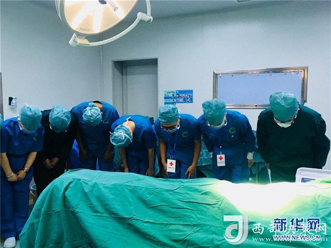8月22日,在器官捐獻(xiàn)獲取手術(shù)前,醫(yī)護(hù)人員向捐獻(xiàn)者鞠躬。