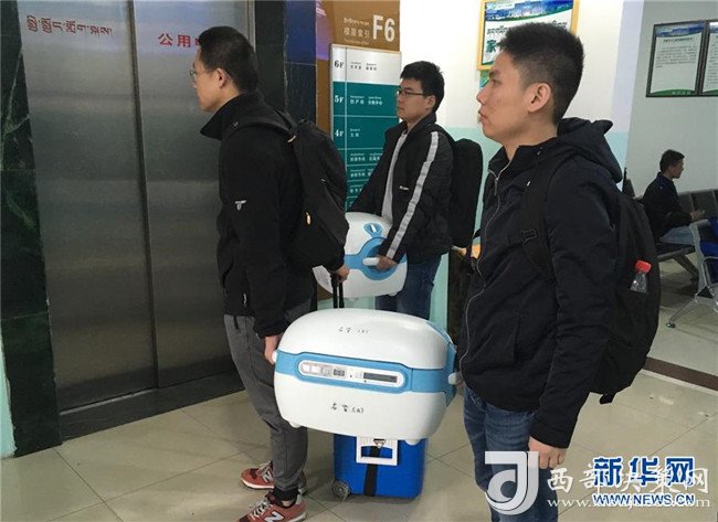 8月22日,在拉薩貢嘎機(jī)場(chǎng),工作人員經(jīng)綠色通道將捐獻(xiàn)的器官送上飛機(jī)。