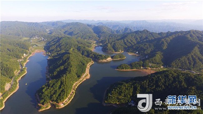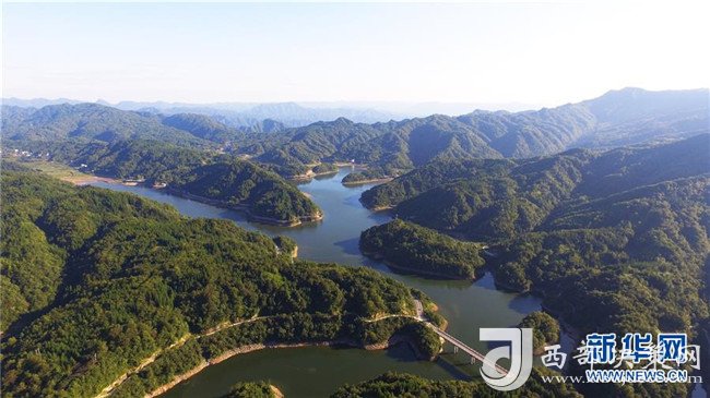 這是8月26日無人機(jī)拍攝的重慶石柱太陽湖景色。