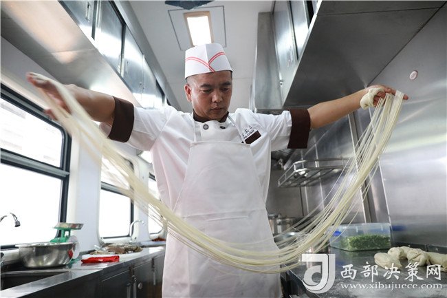 西部決策網(wǎng)——西部大開發(fā)訊 (記者帥華鋒 杜杰 通訊員 強科 宋佳龍/攝影) “終于在火車上吃上了期盼已久的正宗的蘭州牛肉面,給鐵路點個贊。”8月28日,在蘭州鼎鼎有名的“舌尖尖牛肉面”正式入駐蘭州開往敦煌的Y667/8次列車。記者看到,在拉面大師的嫻熟“表演”下,一碗碗撒發(fā)著濃郁香味的牛肉面被端上了列車餐桌。至此,蘭州牛肉面坐火車開啟了舌尖上的“絲路之旅”。