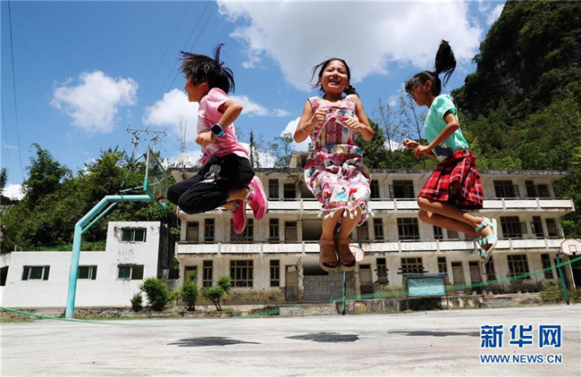 9月3日,重慶市黔江區(qū)石家鎮(zhèn)滲壩小學(xué)的學(xué)生在課間跳繩。