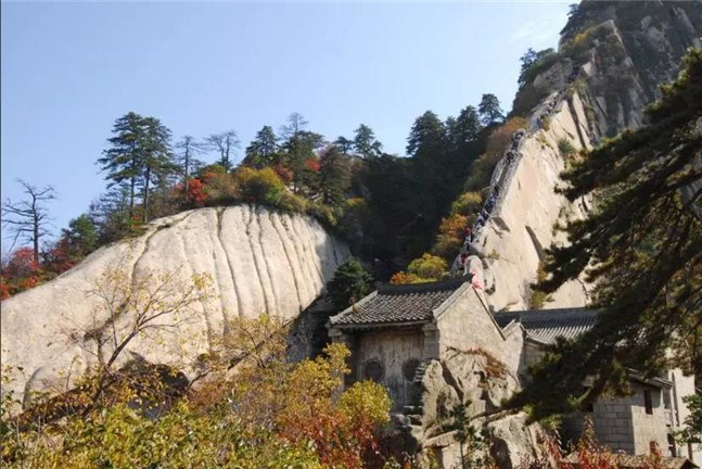 由于華山太險,所以唐代以前很少有人登臨。歷代君王祭西岳,都是在山下西岳廟中舉行大典?!妒酚洝份d,黃帝、虞舜都曾到華山巡狩。據(jù)記載,秦昭王時命工匠施鉤搭梯攀上華山。