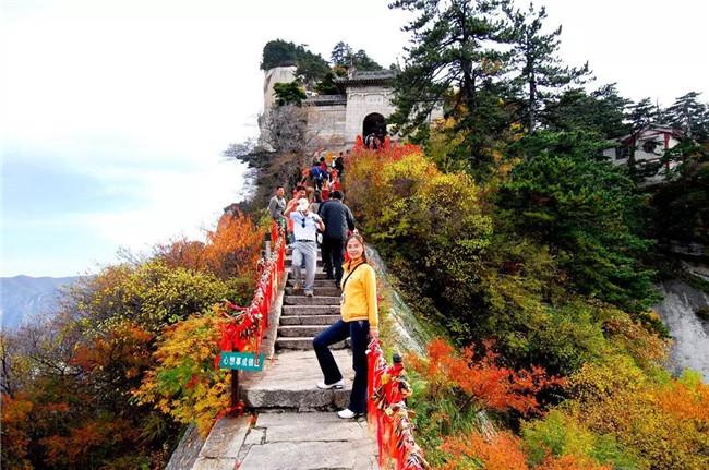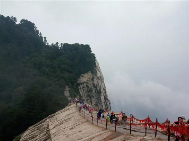 魏晉南北朝時,還沒有通向華山峰頂?shù)牡缆贰V钡教瞥?,隨著道教興盛,道徒開始居山建觀逐漸在北坡沿溪谷而上開鑿了一條險道,形成了"自古華山一條路"。