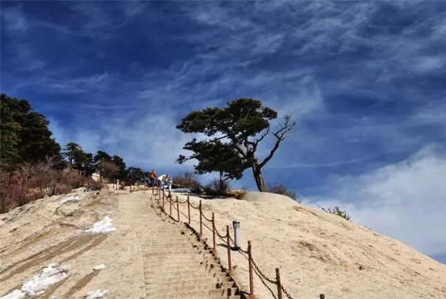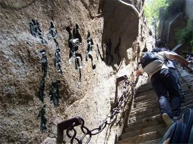 蒼龍嶺是華山著名險道之一,其位于救苦臺南、五云峰下,以其蒼黑色的外部和其似懸龍般的地勢而得名。其如履薄刃,絕壑千尺的地勢使得很多游客膽戰(zhàn)心驚,其中最著名的就是韓愈大哭投書求助的故事并引發(fā)了大量的相關(guān)典故和考證,而該處也因此留下了“韓退之投書處”的文化遺產(chǎn)。