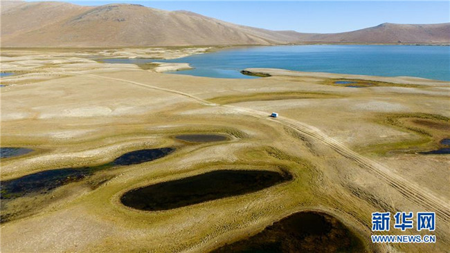 快遞車將網(wǎng)購的商品送到青河縣查干郭勒鄉(xiāng)薩爾布拉克村的牧場(8月24日無人機拍攝)。新華社記者江文耀攝