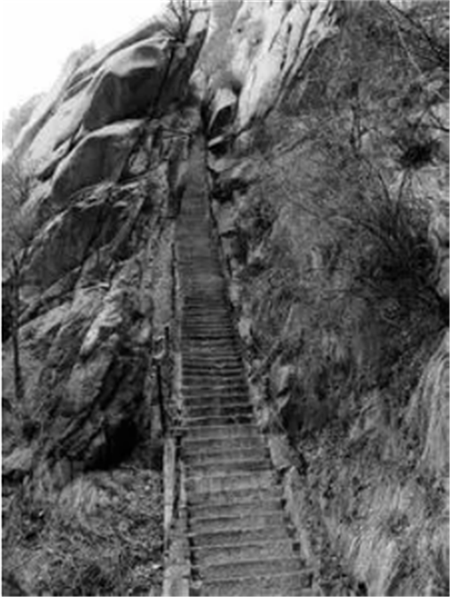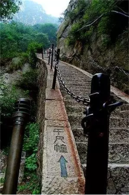 千尺幢是登華山的一段著名的險(xiǎn)道,開(kāi)鑿在懸崖峭壁上,直立千仞,氣象森然,被許多人視為畏途。像千尺幢這樣的登山道路,只有華山才有,華山也因?yàn)橛辛诉@樣的路才有了“奇”“險(xiǎn)”的景色,奇與險(xiǎn)成為華山特別突出的景觀特色。其它山岳也有險(xiǎn)境,但都被掩埋在了雄或者秀等特色中,不像華山的險(xiǎn)這般令人驚心動(dòng)魄,這般讓人心潮澎湃。