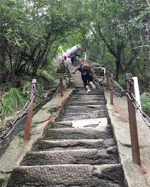 最虐的自古華山一條路,12.5公里的山路,9567級臺階。途經(jīng)玉泉院、千尺幢、百尺峽、老君犁溝、蒼龍嶺等經(jīng)典景點。