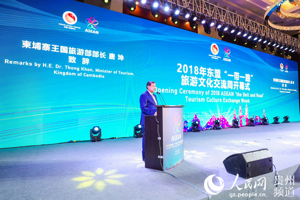 作為交流周活動(dòng)主賓國(guó),柬埔寨王國(guó)旅游部部長(zhǎng)唐坤說(shuō),貴陽(yáng)是座非常漂亮的城市,此次活動(dòng)可促進(jìn)貴州貴陽(yáng)和東盟的合作。目前,柬埔寨積極地服務(wù)全世界游客,實(shí)施了《2020旅游計(jì)劃》,建立了完善的服務(wù)系統(tǒng)標(biāo)準(zhǔn),提高旅游行業(yè)的服務(wù)水平,可以更好地接待世界各地的游客。“柬埔寨有專門針對(duì)中國(guó)游客的優(yōu)惠政策,非常歡迎來(lái)自中國(guó)的游客。”唐坤說(shuō)。