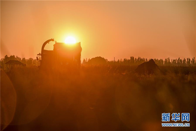 9月26日,收割機(jī)在新疆察布查爾錫伯自治縣納達(dá)齊牛錄鄉(xiāng)的一處稻田收割水稻。眼下,地處新疆伊犁河谷的察布查爾錫伯自治縣約20萬畝水稻迎來收割季。當(dāng)?shù)剞r(nóng)民搶抓農(nóng)時(shí),忙碌在金色田園中。記者 胡虎虎 攝