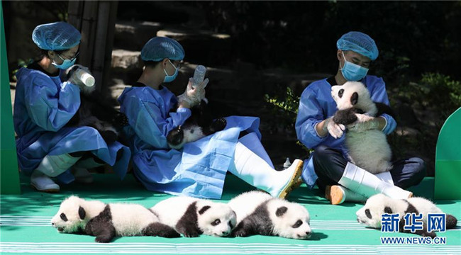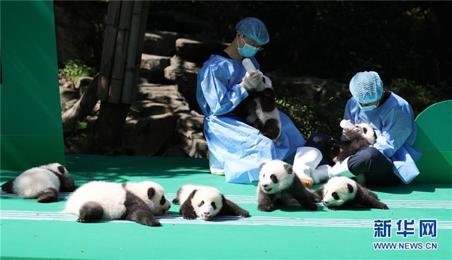 這是9月28日在成都大熊貓繁育研究基地月亮產(chǎn)房拍攝的大熊貓寶寶。 當(dāng)日,成都大熊貓繁育研究基地為2018年出生的12只新生大熊貓寶寶舉行了一場(chǎng)別開(kāi)生面的亮相活動(dòng)。