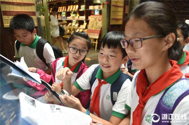 2018年10月9日是杭州市學(xué)軍小學(xué)秋游的日子,畢業(yè)班的學(xué)生在出發(fā)前做足了功課,人人帶著課題去學(xué)習(xí)杭州的歷史文化知識,秋游成了走出校門的探索之旅。(浙江在線記者 潘海松 攝)