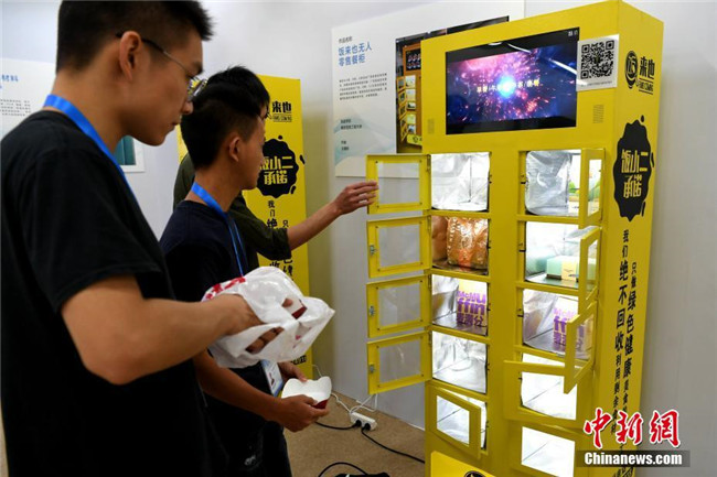 10月13日,第四屆中國(guó)“互聯(lián)網(wǎng)+”大學(xué)生創(chuàng)新創(chuàng)業(yè)大賽總決賽在廈門大學(xué)舉行。無(wú)人機(jī)、自助售飯機(jī)、人偶互動(dòng)、全息3D智能視頻、機(jī)器人輪椅、3D打印假肢手臂等大學(xué)生研發(fā)設(shè)計(jì)的產(chǎn)品亮相會(huì)場(chǎng),以“90后”為主的創(chuàng)新創(chuàng)業(yè)生力軍已全面發(fā)力,釋放出“青年+創(chuàng)新創(chuàng)業(yè)”的無(wú)窮力量。圖為無(wú)人售飯機(jī)展示。中新社記者 王東明 攝