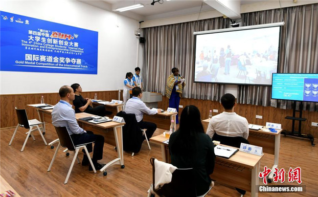 10月13日,第四屆中國(guó)“互聯(lián)網(wǎng)+”大學(xué)生創(chuàng)新創(chuàng)業(yè)大賽總決賽在廈門大學(xué)舉行。本屆大賽于今年3月份啟動(dòng),迄今累計(jì)已有近265萬(wàn)大學(xué)生、63萬(wàn)個(gè)團(tuán)隊(duì)參賽,涌現(xiàn)出一大批科技含量高、市場(chǎng)潛力大、社會(huì)效益好的高質(zhì)量項(xiàng)目,以“90后”為主的創(chuàng)新創(chuàng)業(yè)生力軍已全面發(fā)力,釋放出“青年+創(chuàng)新創(chuàng)業(yè)”的無(wú)窮力量。圖為比賽現(xiàn)場(chǎng)。中新社記者 王東明 攝