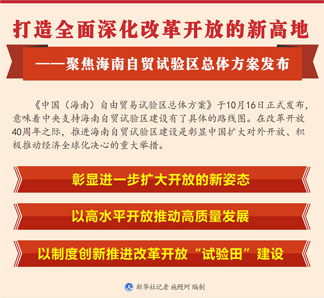 原標(biāo)題:打造全面深化改革開放的新高地——聚焦海南自貿(mào)試驗區(qū)總體方案發(fā)布